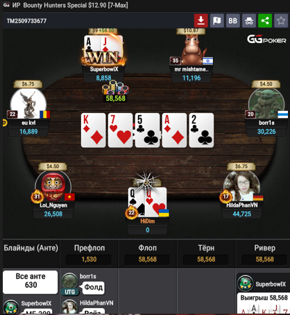 Бывают сессии где удача явно не на твоей стороне. В такие моменты главное это во-время понять, закрыть клиент и дождаться лучшего дня. Что я и сделал по сути. Не отыграл и часа, как вылетел с 3х столов. Сейчас доигрываю последний. Сделал себе вывод 200$ чтоб покутить на этих выходных🤠🤠 До среды короче