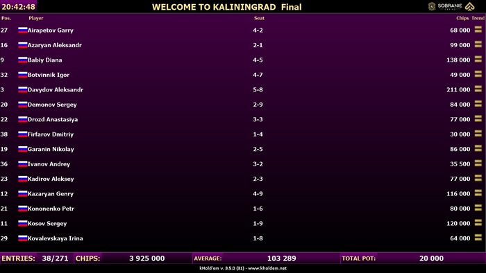 Уже скоро начнется финальный день приветственного турнира Welcome To Kaliningrad. У нас все готово для старта. Рассадка выше 👆 и на большом экране.