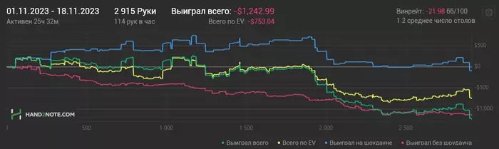 На блеф4бет получаешь пуш или поставил сбет, а дальше без вариков, то это 200. Ну и всякие недоезды, плохие ранауты туда же. Дистанция малая, но и набрать ее непросто. Пытаюсь подселекчивать. Но много неизвестных, которые потом оказываются регами. В целом, фишей меньше чем на 100, гораздо. Оппы серьезней и подкованней. Нельзя спихивать все на диспу, но свою существенную роль она сыграла. Хочу уже чуть попроще эмоционально отработать месяц. А то зарабатываю на 100, чтобы отдать на 200. Непорядок. Но я не специально 😅