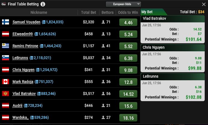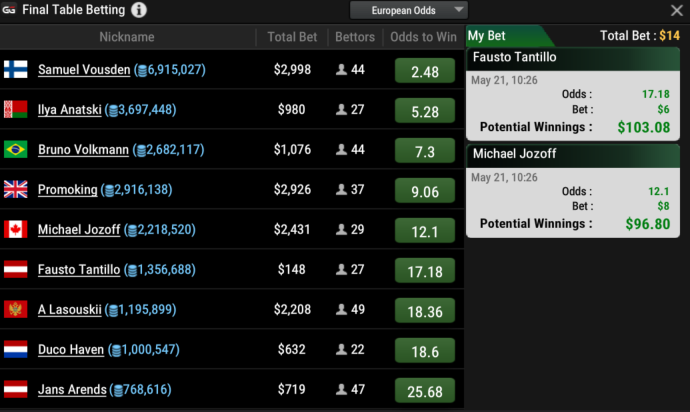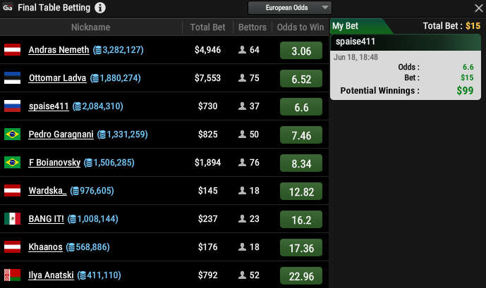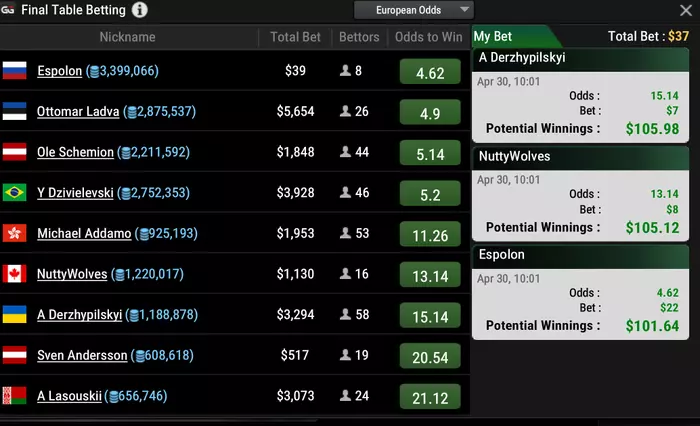 Итого поставил 38 баксов и забрал пол стола :D