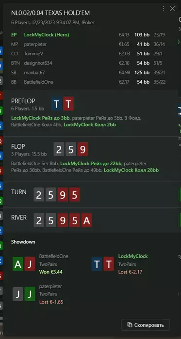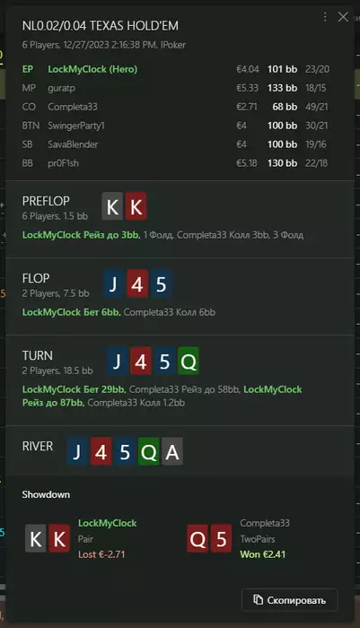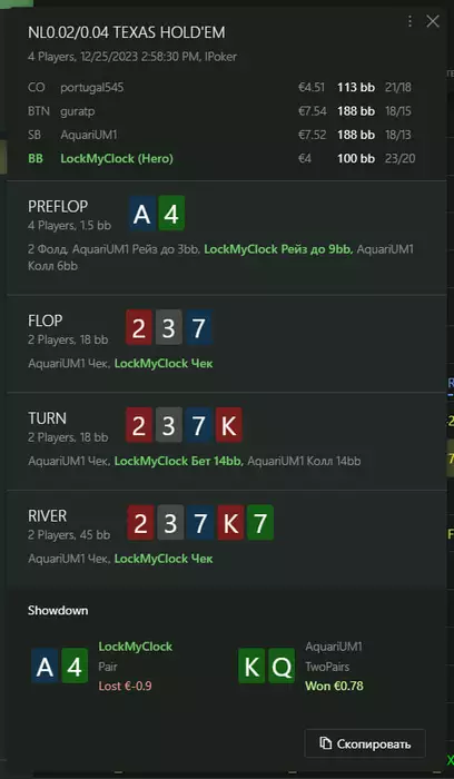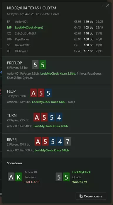 За сегодня +7$, в начале сессии попал наткнулся против чела с каре 77, после он наткнулся против моего каре 55 , почти сразу же)))Карма ни как иначе)Раздачи скинул)А так к сожалению из интересных раздач одни кулера с флопа , поэтому выбрал самые интересное что было.