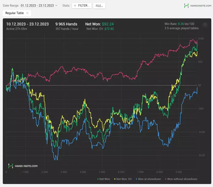 Всем хай, хочу поделиться тем как прошел этот месяц. На нл 10 на старзах очень хуево все пошло, недобор 15 стеков на 10к рук) И я чет психанул, решил попробовать закинуть 40 баксов на новый рум в телеге( увидел как там друг играет) и за 2 дня плюсанул там 300 баксов. Я офигел насколько там слабое поле вообще. Если кому интересно, как туда депнуть и вообше играть, могу рассказать вам в тг @Sammy_Gold Пишите, всем буду рад)