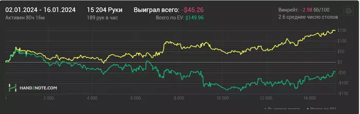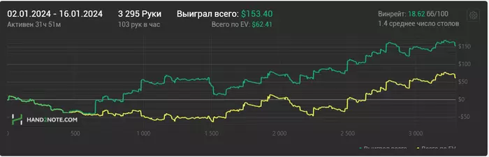 Torchidze @ 17.01.24syndikat999,не буду конечно,в зуме винрейты ниже везде и всегда.Но 40к рук в месяц тоже не 300к.Хотя тут кто как любит катать,я привык играть много что на ГГ что на старсах.Даже на нл2 в зуме я раньше показывал 10бб рейт а сейчас 5.Поэтому выше можно было пробовать только с хорошим рб,а теперь только гонять сутками ГГ с такой випкой на старсах:(((