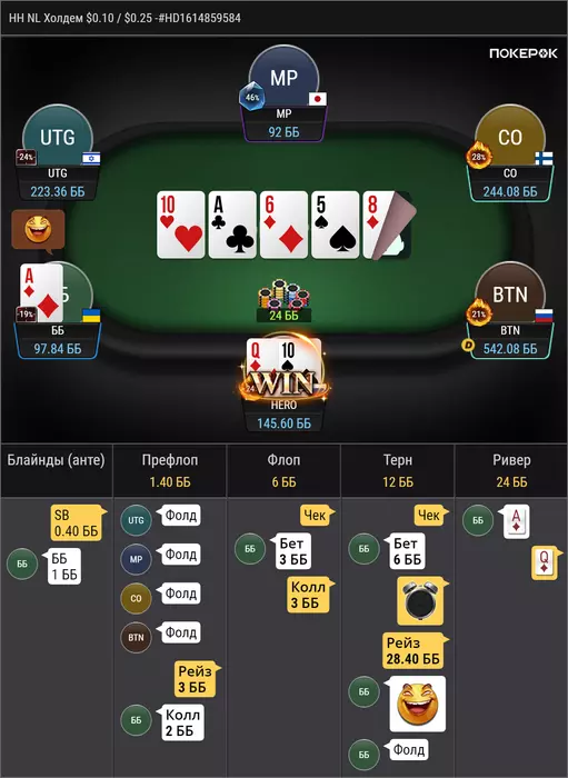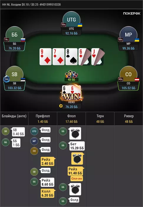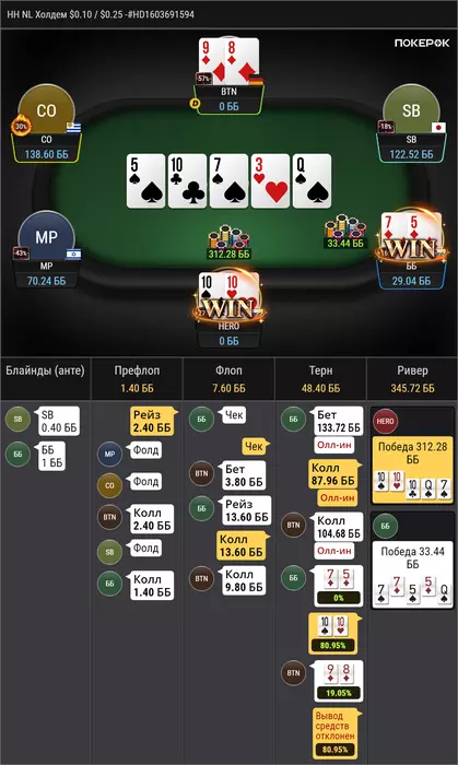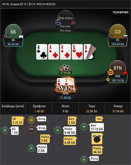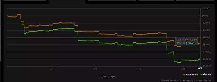 Забавно что, скорее всего, единственное минусовое решение опп сделал заколив префлоп