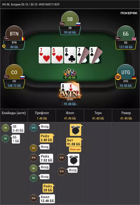 mRedJohn, ну так я и разбирал и разбираю вроде, и как раз результат того, что я разобрал, я начал рассматривать пуш на флопе вообще как опцию в 4 бет поте без позиции, т.к не редко на связанных досках уязвимое велью он играет прямой пуш, иногда он так делает даже в 3 бет потах, например на доске 89T в 4 бет поте без позиции играются пуши, я приминил данную логику к той ситуации, она оказалась не совсем верная, я даже понял почему она не совсем верная