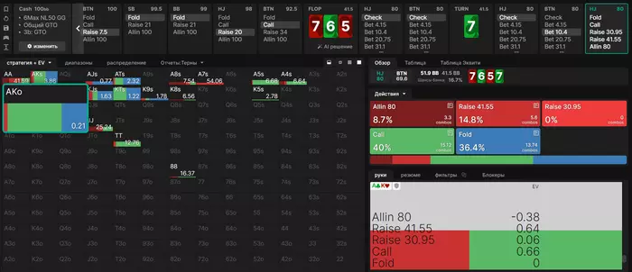 Там чек чуть чаще, чем 50%. И жёсткие сплиты по рандомайзеру всего диапа. Например, КК и в чек/колле, и в чек рейзе, и в бете 25 и 50% будут. Как и АК.