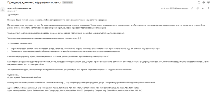 С каждой сессией я ближе к закреплению того, что покер в целом и мои лимиты особенно бьются строгой дисциплиной(во многом спасибо постам Radeo_). Сидишь несколько часов, ничего не раздают. Фолд, фолд, фолд. Скучаешь. Думаешь, нахер я вообще здесь сижу, если ничего не выигрываю. Начинаешь влезать не в те банки, проигрывать лишние раздачи, убиваешь свое время в будущем — придется ведь отыгрывать этот колл на пол стека своим временем, когда в двадцать пятый раз получаешь рейз на говноборде.