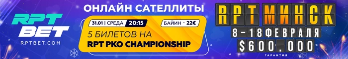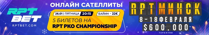 Дарим 3 билета за €22 на сателлит к RPT PKO Championship в сети Rptbet.