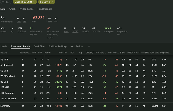 Турниры хорошо вывели в плюс месяц, почему-то х2нот неверно профит считает, но получилось по базе 38 турниров баин 0.5-4$