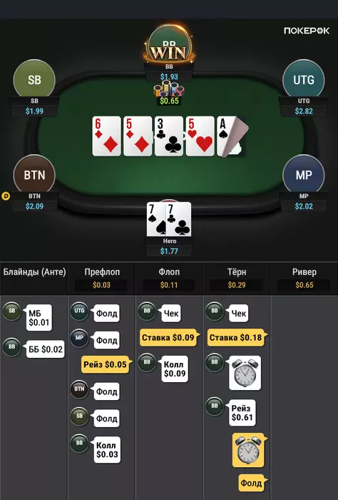 И вот опять же вопрос с сайзингом, тут 3 бет на вэлью без позы нужно ставить больше, но вот хотим ли мы выбивать мусор у него, по типу 66-1010, конечно же нет. Но на такой доске мы получается проигрываем постфлоп и сдаемся.
