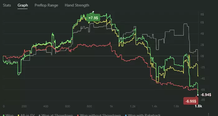 Каждая моя сессия начинается просто безупречно, я хорошо читаю руки, достаточно легко выкидываю топ пары или сеты на флеш досках, когда понимаю что опп будет редко блефовать. Но после часа игры у меня включается режим бога, любой фиш в меня блефует и я всегда старше, широкий колл оллинов от фишей с коротким стеком на 30бб и прочие не очень плюсовые действия.