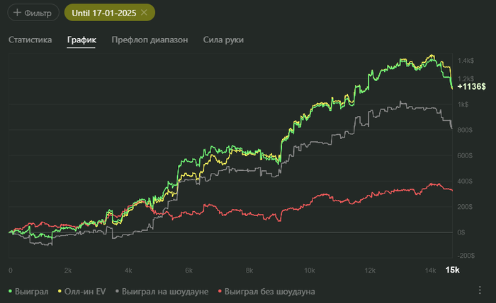 Кароче в теории, вот последний график что ты скинул. Челлендж бы тоже показал +2000...но с нюансом. То есть делаем вывод, то что ты заработал по "покеркрафту", ты должен "заслужить" через ЛБ и прочие "плюшки"))) ни больше, ни меньше (!!). Это к вопросу предыдущему, о том выгодно ЛБ или нет....оно не то что выгодно...в этом ЛБ засунули твой рейкбек...который будут лутать другие игроки, которые играют на ЛБ в отличии от тебя. Кароче без ЛБ никак. Либо вовремя стопать себя на каком то профите И не играть сессию до старта след ЛБ.