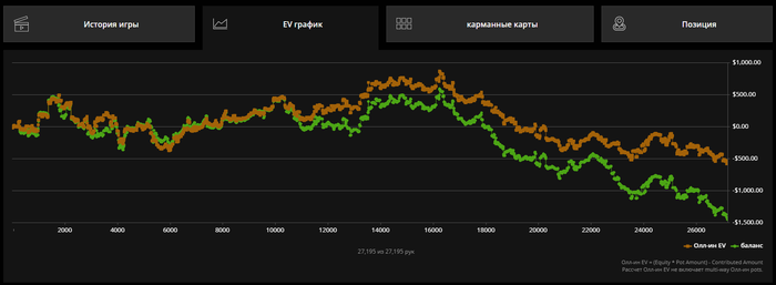 Почуяв запах крови, я уже не мог остановиться и играл в режиме перманентного шота нл100. То есть, отыграюсь на мелких, накоплю касарик и снова воевать на нл100, с надеждой закрепиться. В итоге остался ни с чем, но кэшаут на жизнь уже был сделан, острой потребности в деньгах не было и к концу месяца забил уже на сраный покер и отдыхал, играя в компик.