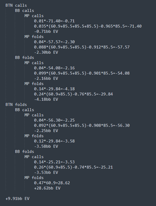 если подсчитать ЕВ пуша получим +10бб ЕВ (пре рейк)