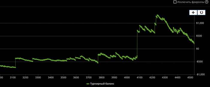 Мои прошлые низы стали верхами, первый раз катнул ПКО за 21 на ГГ. Отыграл гг в +30 баксов, доехал на Айпокере в +400 баксов + билет на Мистери (и сюда же бонусом мин.итм за прошлый билет), но билеты от себя, потому не в счет.