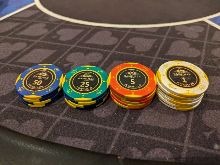 Пока мы ехали игра уже началась, но шла буквально с десяток минут. К своей очень большой радости я обнаружил, что играют блайнды 1/2, а не 5/5, когда получил белые фишки номиналом в 1 шекель, взяв для старта 400 NIS (106$).