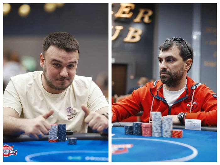 В хедз-апе доиграли до блайндов 25к/50к/50к. Максим Коваленко смог сравнять стеки (по 800к), но проиграл раздачу и у него осталось 600к фишек против 970к у Данила Бабичева. Поехали префлоп: Максима против Данила.