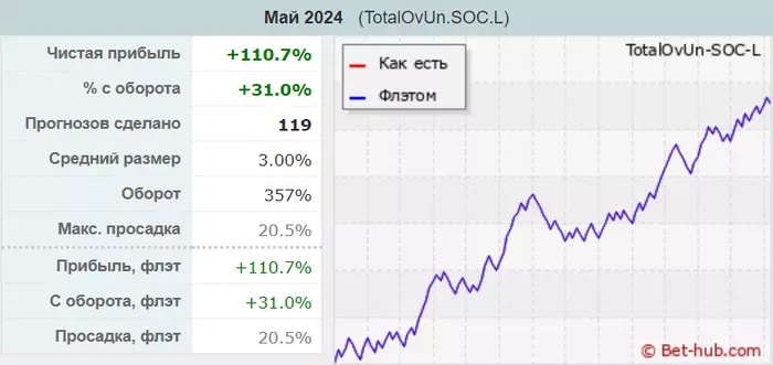 Получаем +5,25 флэта (ROI=17,5%) - полет отличный.