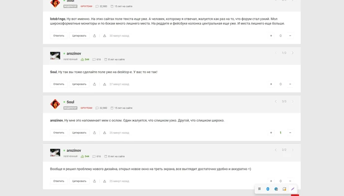 - Этот взгляд в новом дизайне меньше спотыкается об кнопки "Ответить" и "Цитировать"