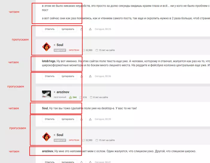 Soul @ 06.06.24krestik, Открой практически любой популярный сайт и посмотри на ширину центральной ленты. От фейсбука до реддита. Это же не случайно.