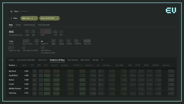 👤: Сегодня ровно месяц как я состою в проекте и график стал более стабильный, в начале нужно было посмотреть ~10 трень, а потом только начинать играть и на теорию уходило слишком много времени, но это принесло свои плоды. Сейчас стал играть через день на мин ЛБ и на следующий день набирается 30+ раздач на которые уходит 4+ часов ну и 1 треньку смотрю, что бы хоть что-то новое узнать.