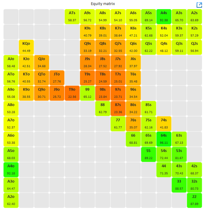 Azilya93, ну так я и говорю что никто не играет по солверу) потому что на таком борде найти рейз 7 процентов сложно. хорошо если поле найдет тут 3-4 % рейза.