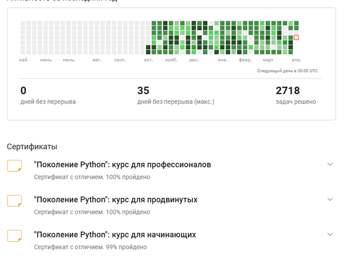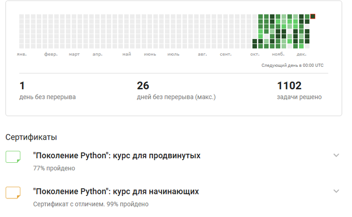Правда, я немного читерил — в выходные решаю одну-две задачи, чтобы счетчик дней не обнулялся, и иду отдыхать.