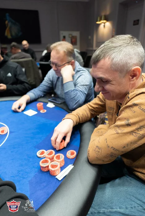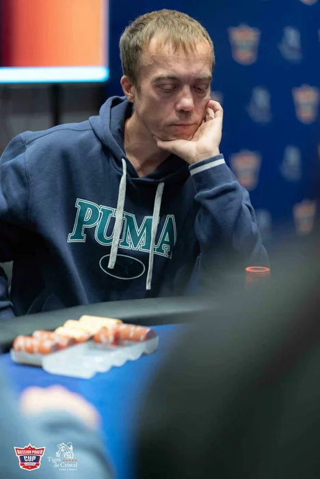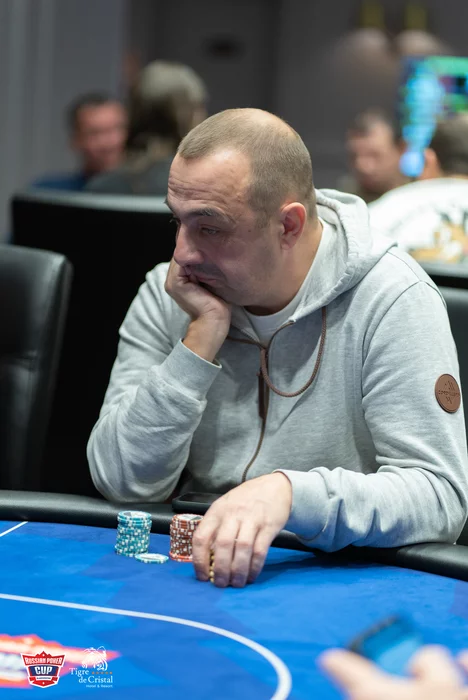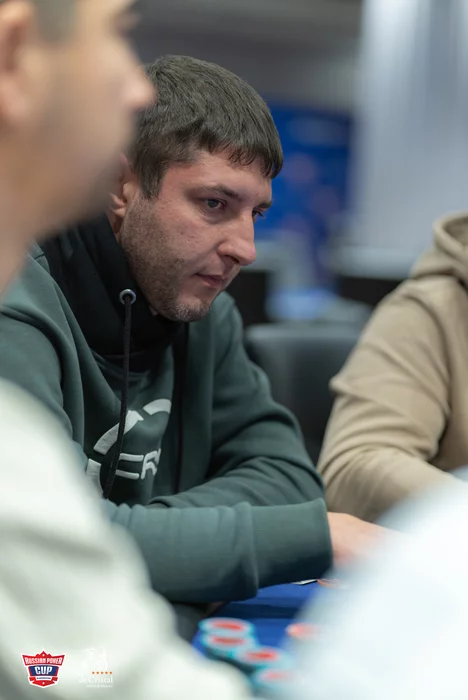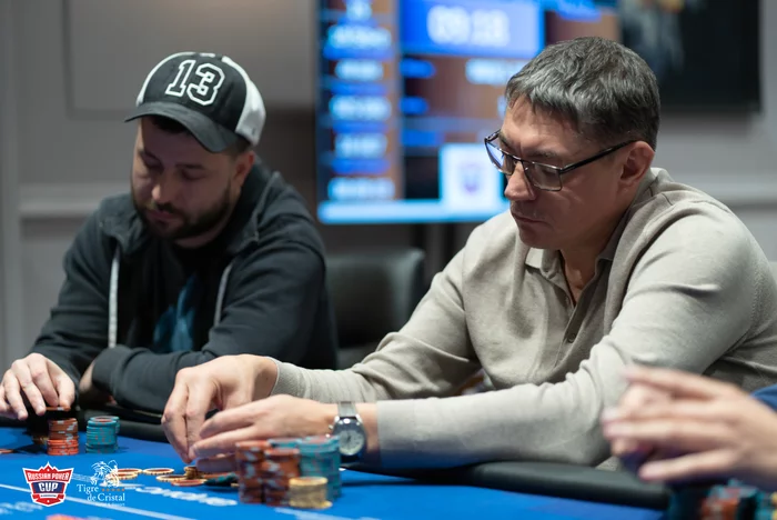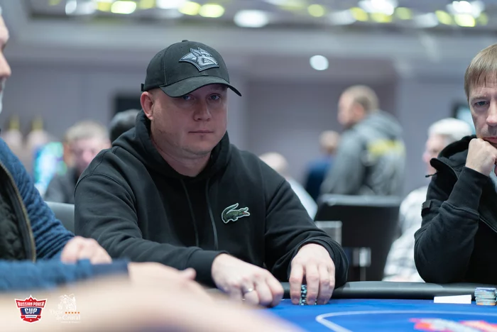 Терн и ривер ничего не поменяли. Сергей Сальников получил 275 у.е. призовых, а Дмитрий Везовский — большой чиплидер, а ведь в топ-23 ему пришлось тащить 4%, выставившись на терне. С чем Дмитрий успешно справился и после этого только наращивал стек.