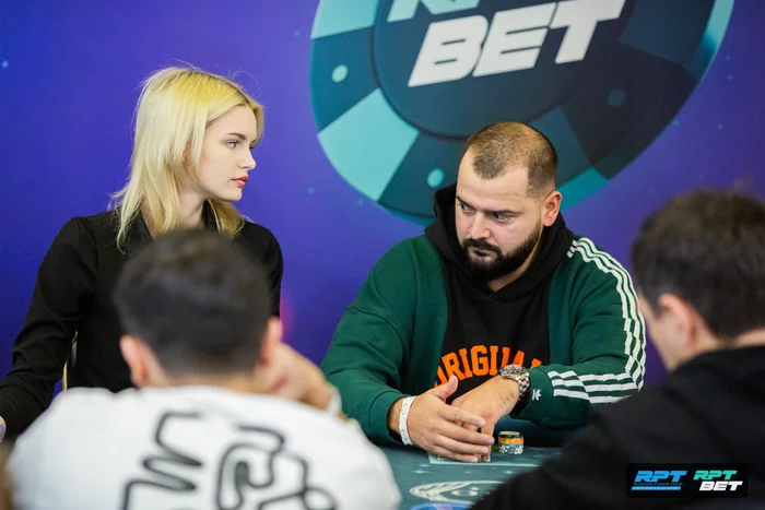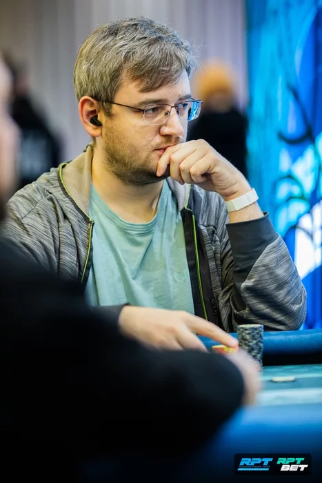 Александр Жолнерчик перед перерывом выиграл важный 3-бет банк. Именно там он заработал крупную прибавку к стеку и переиместился на вторую строчку чипкаунта.
