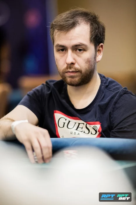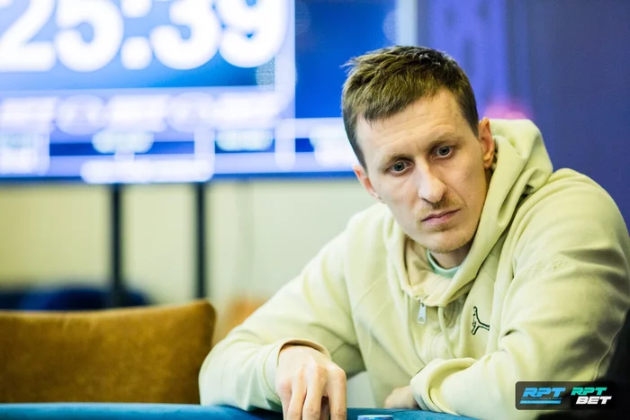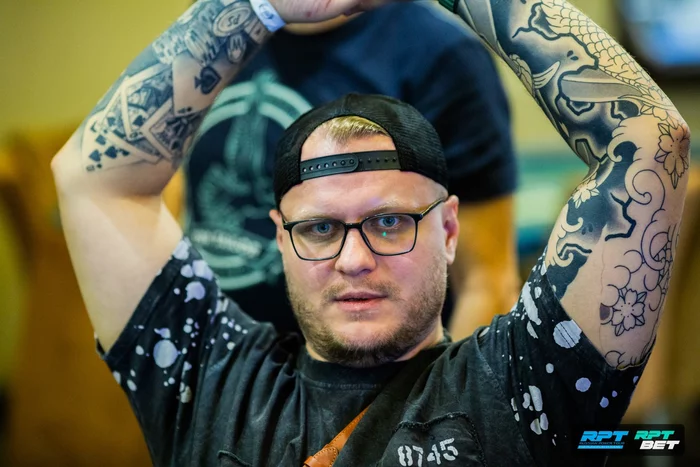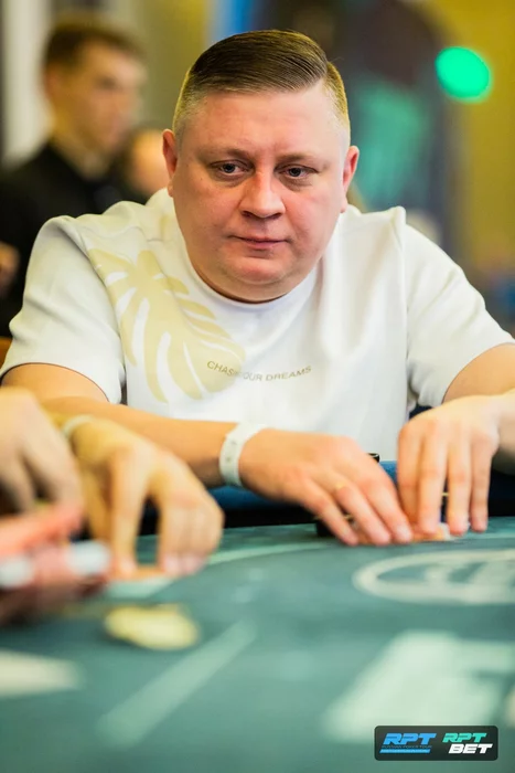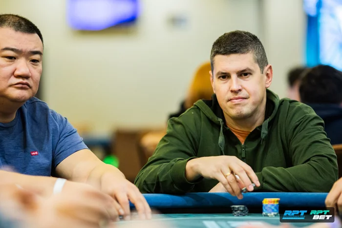 Чуть позже за этим же столом Илья Костючик удвоился с против Сергея Фурсова. Получил в этой раздаче стек 40к, но с ним дожить до ИТМ не смог и выбыл на 20 месте.