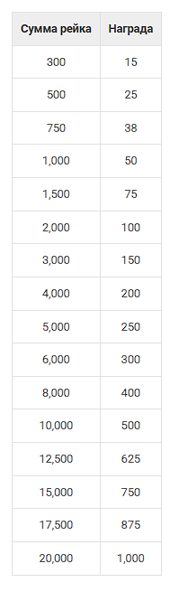 В зачет идет весь рейк за время акции: чем больше сумма, тем выше награда. Призы выплачиваются после окончания на аккаунт в покер-руме. Максимальный рейкбек составляет 5%.