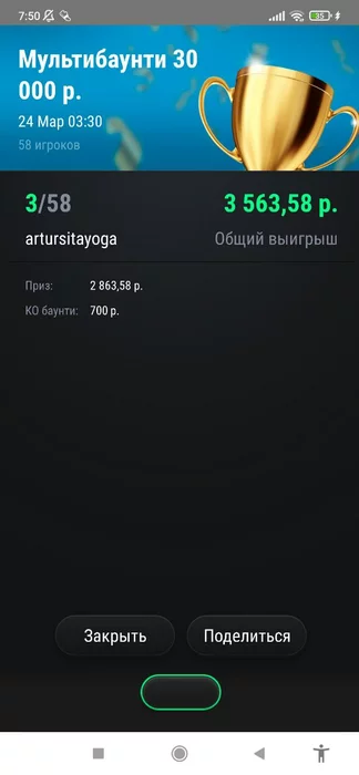 За эти дни сыграл 7 туриков с загрузкой -3050р. и вышел в +4100р.