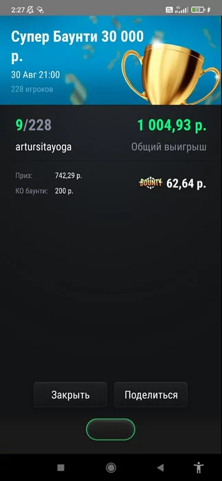 Отыграл туриков 10 в ноль, а сегодня не дошёл до топ - 1 а так не плохо +8400р.