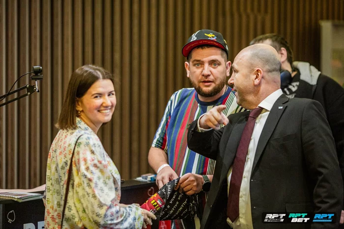 Мария Ложкина сыграла лимпом из ранней, поддержал Явид Гасанов на малом блайнде. Евгений Колошин — повысил до 3к. Мария сыграла колл, но спустя пару минут выбросила на олл-ин Явида и колл Евгения.