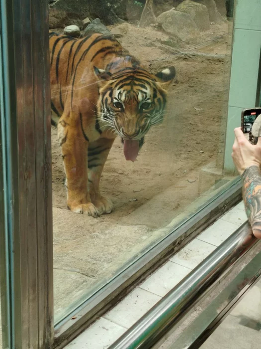 На втором месте у меня тигры. Роскошные большие коты за мутным защитным стеклом: