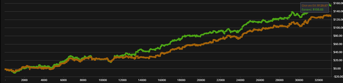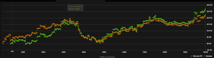 момент только в том, что я брал страховку в 80% случаев, и переехали меня вроде как только 2 раза. Получается я в ту сессию недобрал 15$ чисто иза того что брал страховку.Но, с другой стороны меня просто не переезжали. Думаю что когда я играю огромную сессию на гонку, для моральной устойчивости все равно +EV брать страховку. Но вообще по сути тема минусовая, буду еще смотреть и тестить.