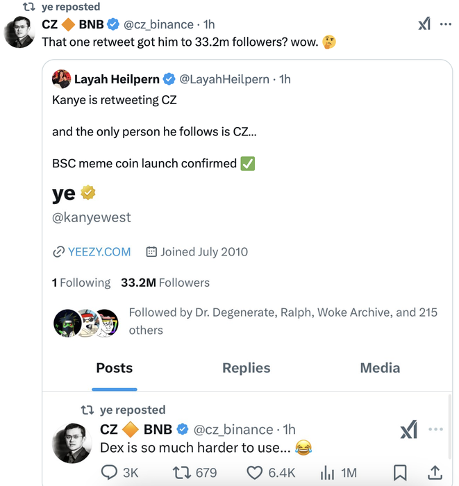 все идет к тому, что Канье запустит свой мем коин на bnb. Запуск пропускаю, так как тягаться в скорости с лучшими снайперами практически нереально. Интересно скорее сможет ли bnb откусить у соланы кусок пирога мемов