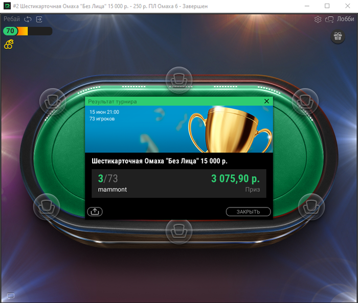 Сегодня поиграл кеш ПЛ Омаха хай лоу 6 карт выиграл около 2000 р начинал с 300 р, два захода было.
