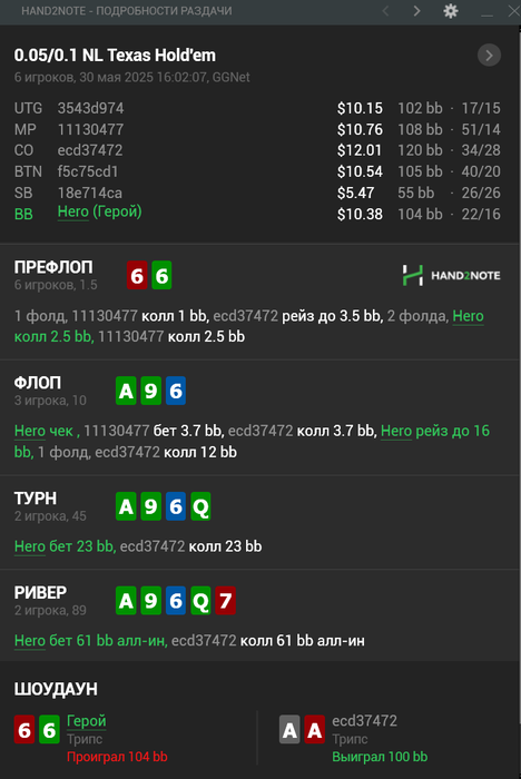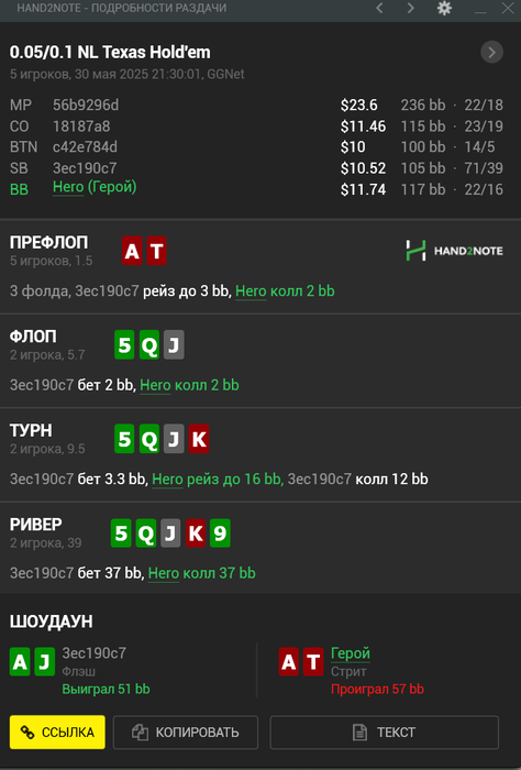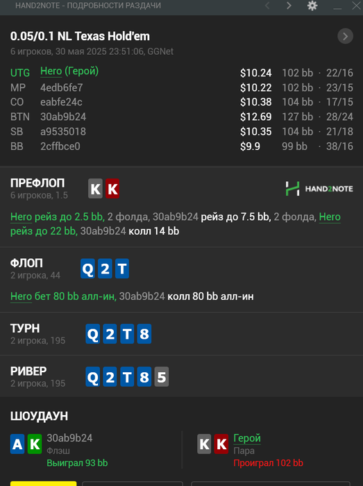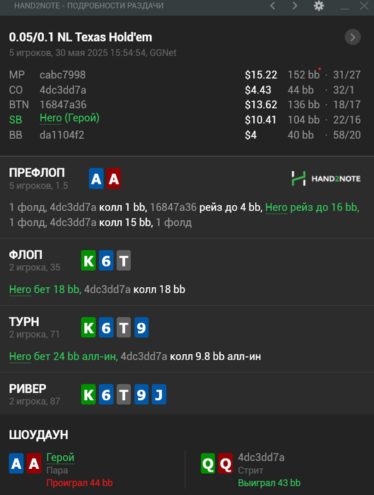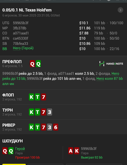 (Если так со стороны посмотреть, то правильный плэй будет сквиз, чел с Тузами явно будет агриться, а я бы выкинул и всё ноль проблем. Я просто под любителя ещё заколил, ну поиграем думаю мультипот, поиграл)