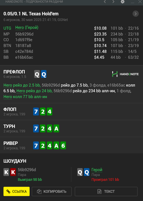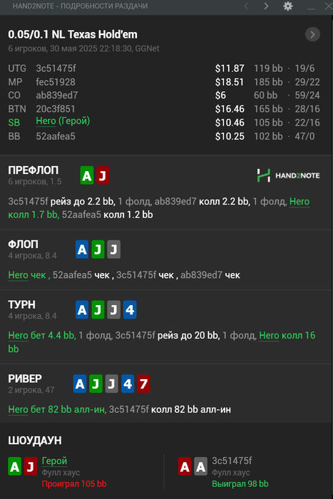 Играю я скажем нормально, в целом, на 4-6бб точно могу катать, но блять, какого хуя это просиходит. То есть, чтобы набить БРчик, столько сил и времени тратить, а потом хуяк-хуяк и ты в жопе, всё по диспе пошло.
