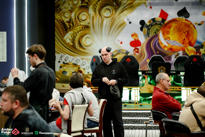 Никита Вознесенский играет агрессивно. Заметил две раздачи, где в одной поставил олл-ин на 4 лимпа и второй раз выиграл раздачу, поставив 3-бет. Сейчас у него в стеке снова 35,000.