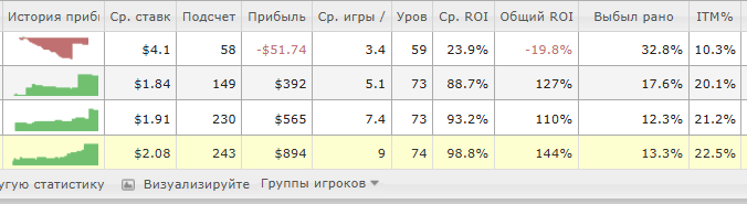 2. Реэнтри. Многие хитрюги забывают дополнять, что они считают реэнтри. Ну, такими темпами можно и в один турнир зайти десять раз, но вряд ли это можно считать полезным. В моем фонде разрешается использовать реэнтри только раз-два за 20 турниров.