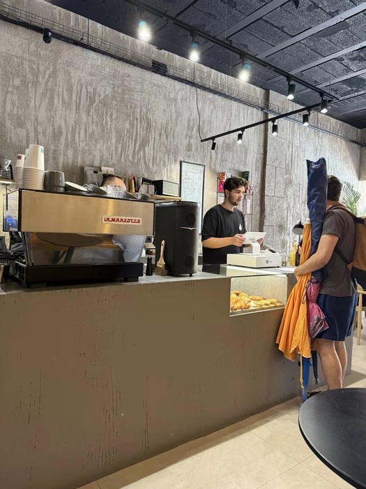 Локация находиться рядом с набережной. На первый взгляд место показалось в таком тупичке и вроде рядом набережная но кафе как-бы в таком переулочке и не очень заметно. Зайдя в кафе понял что это обманчивое впечатление. Людей внутри было много. Некоторые сидели и работали с ноутами, некоторые просто пили кофе и ели десерты и уходили, а на их место заходили следующие.