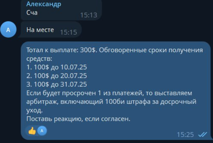 EricKartman @ 29.07.25Т.к. арбираж на меня заведен (что я вроде тоже не оспаривал ни разу, понимая срыв договоренностей), сумма возврата выросла в 2 раза при появлении темы, предыдущие договоренности по срокам не действуют. Верно?