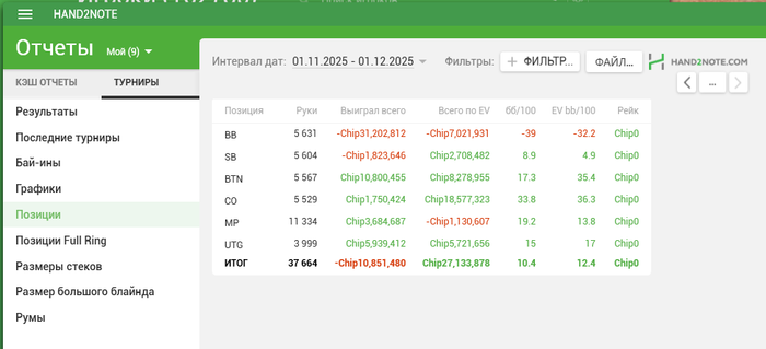 В сентябре при отыгрыше 610 турниров винрейт просел до 8.9бб/100 но я уже находился в более осознанном состоянии и понимал, что могу быть в мэйке еще долго и до конца года уже готовился сидеть без денег. Пришлось даже присматривать работу в этих реалиях.