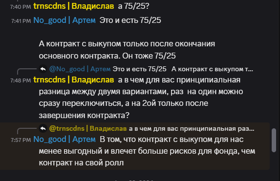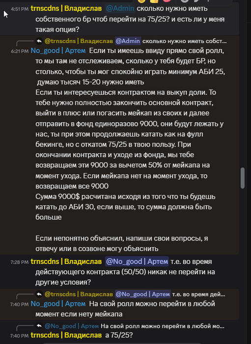 В самом начале войны любые требования по дистанции с ребят из Украины были сняты и долгое время их не было + мы повышали откаты на 5% для всего фонда, потом ситуация у большинства игроков стабилизировалась и большинство вернулось к минимальной дистанции. Конкретному игроку штрафы неоднократно прощались, а потом в какой-то момент он сам дал согласие на вот такие условия: