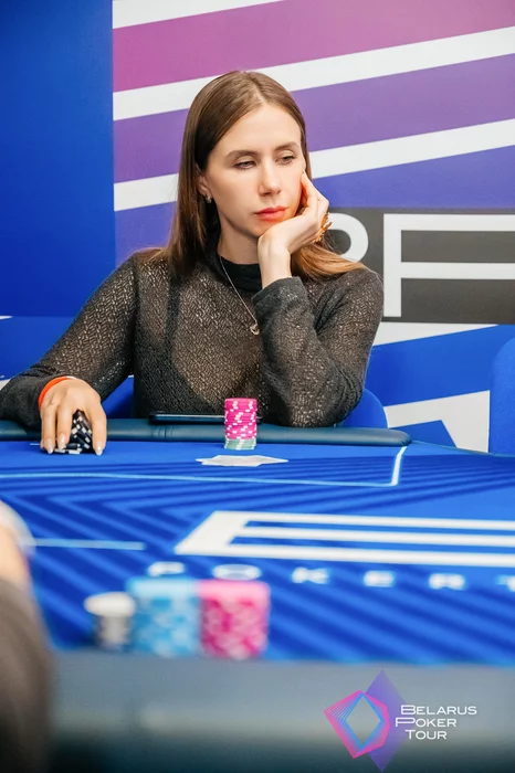 На флопе Мария проставила ещё 5к, получила колл. На терне — ещё 20к и закрыла олл-ин около 45к с . Тихонович показал .