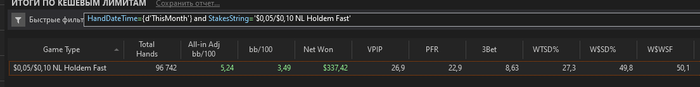 Fopihu, На нл10 тоже. Ща глянул,у меня 3бет 5,7%. Но заводят под него пол колоды. Хотя по-хорошему на EP,MP им нужно вальтов железобетонно зарывать против такого