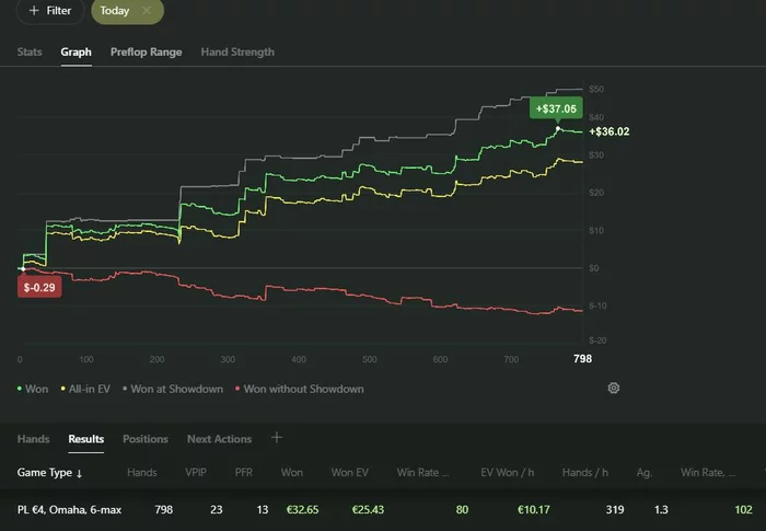 Маловато рук отыграл, из своего графика выбиваюсь, до 50к раздач наверное не дотяну :(