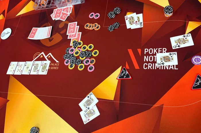 Со второго утюга лимпом зашла Анна Щербинина (18К). Александр Мегрелидзе (45К) с HJ повысил до 1,2К. Тогда на СО Лев Кыдатов (14К) 3-бетнул 3,5К. Там уравняли.